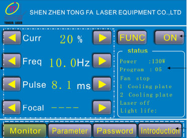 3、 本模具激光焊機,提供了液晶護眼光閘的時間設置,針對不同的脈寬,可設置不同的擋光時間,保護操作工眼睛不受到激光的閃眼不舒服感。